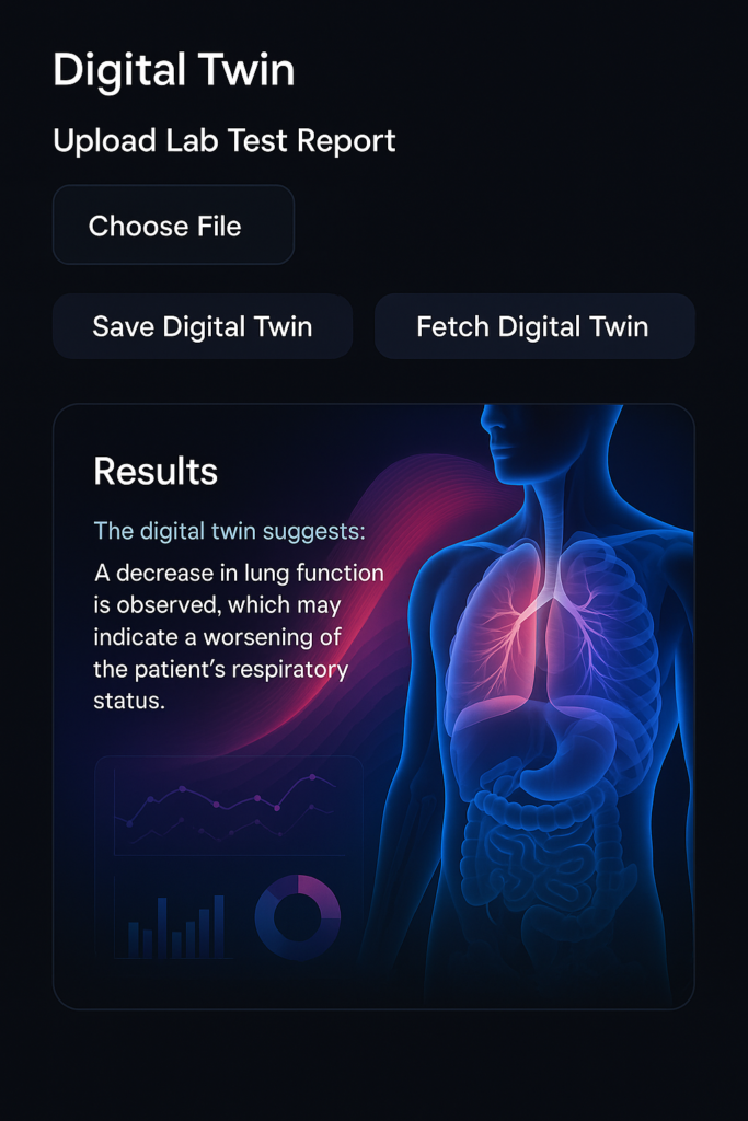 Our platform uniquely integrates AI-driven digital twins, hybrid genetic analysis, real-time lab report interpretation, and immersive 3D visualization, enabling doctors and researchers to simulate, personalize, and optimize patient care with unprecedented precision.